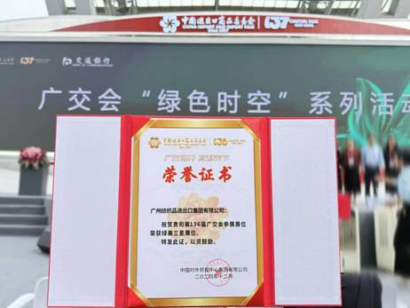 廣交會二期展會首日,在大會舉辦的“綠色時空”頒獎儀式上,紡出公司家具展位設計因突出的環(huán)保理念和創(chuàng)新實踐榮獲“綠美展位優(yōu)秀案例”稱號,公司代表出席并登臺領取了“綠美三星展位”榮譽證書,彰顯紡出公司在戶外生活領域的創(chuàng)新實力和環(huán)保承諾。