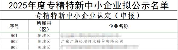 喜報:廣紡檢測順利通過“2025年專精特新中小企業(yè)”復(fù)核認(rèn)定